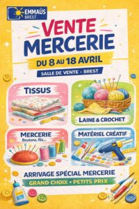 Du mercredi 8 au 18 avril, Emmaüs Brest vous propose une vente thématique dédiée à la mercerie.